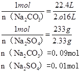 3、实验题 (各2.5分,共5分).取一定量的Na2CO3和Na2SO4混合物溶液与过量盐酸反应,生成2.016 L CO2(标况下),然后加入足量的Ba(OH)2溶液,得到沉淀的质量为2.33 g。试计算混合物中Na2CO3和Na2SO4的物质的量分别为多少。