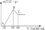 ③当横坐标的数值为60-70时,沉淀的质量减少,说明氢氧化铝和氢氧化钠反应生成偏铝酸钠导致沉淀的质量减少.
