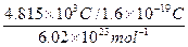 5、填空题 将一种化学式为R(NO3)x·nH2O的硝酸盐晶体6.05 g溶于水配成500 mL溶液,用石墨棒作为电极材料对此溶液进行电解。当通过电流强度为5 A的电流16.05 min时,溶液中的金属离子已全部放电,且其中一电极增重1.60 g(已知此晶体的摩尔质量为242 g·mol-1)。