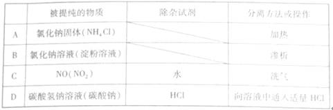 3、选择题  为提纯下列物质(括号内的物质是杂质),所选用的除杂试制和分离方法都不正确的是(?)