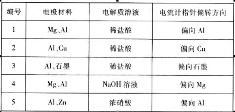 3、填空题 分某化学兴趣小组为了探索铝电极在原电池中的作用,设计并进行了一系列实验,实验结果记录如下: