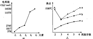 3、填空题 (1)图表法、图像法是常用的科学研究方法。短周期某主族元素M的电离能情况如图甲所示。则 M元素位于周期表的第____族。