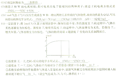(3)1mol气态Z与O2反应生成液态W和一种由两种元素组成的气体物质,放出的热量为QkJ,写出该反应的热化学方程式:?