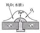 1、选择题  已知铅蓄电池的总反应PbO2 +Pb +2H2SO4="=" 2PbSO4 + 2H2O ,图为铁铆钉铆在铜板上,有关叙述不正确的是