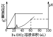 本题解析:本题以图示形式检查酸、碱中和生成沉淀质量和溶液pH曲线随加入Ba(OH)2溶液体积变化情况,此题属于理解层次的中等难度试题。