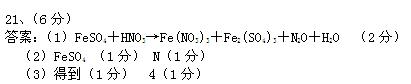 1、填空题 (6分)(1)请将5种物质:N2O、FeSO4、Fe(NO3)3、HNO3和Fe2(SO4)3分别填入下面对应的横线上,组成一个未配平的化学方程式。