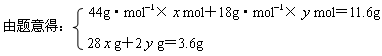 设原混合物中CO2和H2O的物质的量分别为mol、mol
