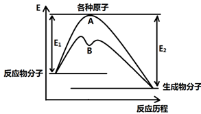 2、填空题 (12分)已知某反应在不同条件下的反应历程可以表示成下图,