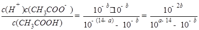 ②在25℃下,将pH=a的氢氧化钠溶液与pH=b的醋酸溶液等体积混合,若两溶液恰好完全反应,则________14(填“>”、“<”或“=”);该温度下醋酸的电离常数K=__________(用含a、b的式子表示)。