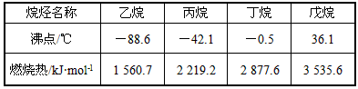 4、选择题  含有2~5个碳原子的直链烷烃沸点和燃烧热的数据见下表