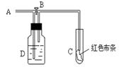 3、选择题 如图:A处通入氯气。关闭B阀时,C处红色布条无变化,打开B阀时,C处红色布条褪色。由此作出的判断正确的是(? )