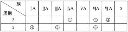 1、填空题 (8分)下表列出了①~⑥六种元素在元素周期表中的位置。