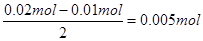 ,所以原溶液中Cu2+的浓度是0.005mol÷0.2L=0.025mol/L。