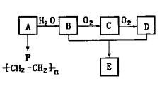 5、填空题 A是一种重要的化工原料,A的产量可以用来衡量一个国家的石油化工水平;B、D是饮食中常见的两种有机物。E具有果香气味。A、B、C、D、E、F在一定条件下存在如下转化关系(部分反应条件、产物被省略)。