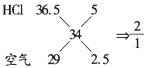 M= 17×2g /mol= 34g /mol<M(HCl),说明收集气体时混有空气。