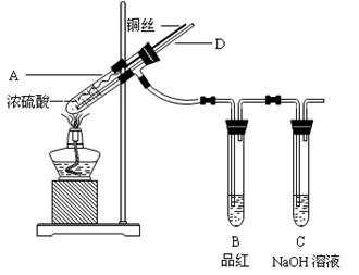 本题解析:(1)浓硫酸具有强氧化性,能氧化金属铜,则试管A中发生反应的化学方程式为Cu+2H2SO4(浓)