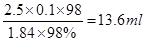 (1)用量筒量取质量分数为98%,密度为1.84 g/cm3的浓硫酸?mL。