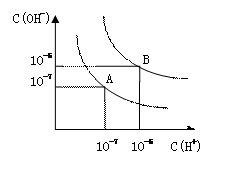 度升高到100℃时,水的电离平衡状态到B点,则此时水的离子