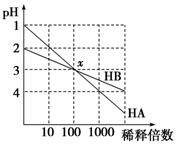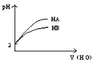 2、选择题 HA和HB两种酸的溶液分别加水稀释时,pH变化的简图如图所示,下列叙述中不正确的是