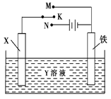 D.若X为铜棒,Y为硫酸铜溶液,开关K置于N处,铁棒质量将增加,溶液中铜离子浓度将减小