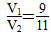 =10-2,10-1V2-10-1V1=10-2V2+10-2V1,即9×10-2V2=11×10-2V1,