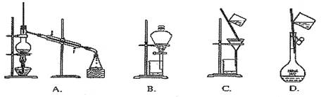 本题解析:A是个蒸馏装置,用于分离互溶的沸点不同的液体混合物。正确。B是分液,用于分离互不相容的两种液体混合物。正确。C是过滤,用于分离不溶于液体的固体的操作。正确。D是转移溶液,这是配制一定体积一定浓度的溶液的一个操作过程。与分离物质无关。错误。