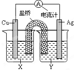 5、选择题 依据氧化还原反应:2Ag+(aq)+Cu(s) = Cu2+(aq)+2Ag(s) 设计的原电池如图所示。下列叙述正确的是?(?)