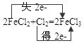 (3)2FeCl2+Cl2=2FeCl3 (方程式写对2分,双线桥表示2分)