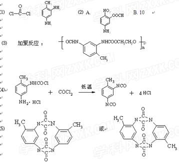3、填空题 (16分)甲苯二异氰酸酯(简称TDI)是一种重要的化工原料,是制造聚氨酯系列产品的原料之一。而工业TDI产品是2,4-甲苯二异氰酸酯与2,6-甲苯二异氰酸酯的混合物。工业上生产TDT的方法有几种,但比较成熟和经济的方法是胺光气化法。下图为工业上用“胺光气化法”合成TDI后生产某聚氨酯产品的主要反应流程图(副产物没有标出)