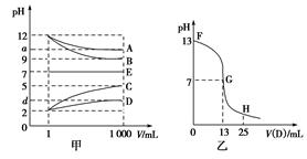 液从1 mL稀释到1 000 mL,pH的变化关系如图甲所示,其中A与D反应得到E。请回答下列问题。