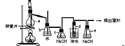 2、实验题 (10分)1,2-二溴乙烷可作汽油抗爆剂的添加剂,常温下它是无色液体,密度2.18g/cm3,沸点131.4℃,熔点9.79℃,不溶于水、易溶于醇、醚、丙酮等有机溶剂。在实验中可以用下图所示装置制备1,2-二溴乙烷。其中分液漏斗和烧瓶a中装有乙醇和浓硫酸的混合液,试管d中装有浓溴(表面覆盖少量水)。请填写下列空白: