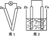 ④用导线把锌片和铜片连接起来后,再平行地插入盛有稀硫酸的烧杯中(如图2)。