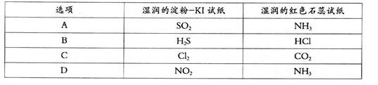 1、选择题 以下四组气体分别与对应的试纸接触,均能使试纸变蓝的是