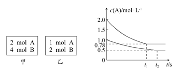 1、选择题 向甲、乙两个容积均为1 L的恒容容器中,分别充入2 mol A,4 mol B和1 mol A,2 mol B。相同条件下,发生下列反应:A(g)+2B(g)