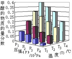 (3)由于反应是体积减小的放热的可逆反应,升高温度平衡向逆反应方向移动,甲醇的含量降低。增大压强平衡向正反应方向移动,甲醇的含量增大。因此选项CD正确,答案选CD。