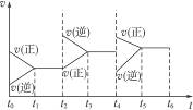 3、选择题 在一恒容密封容器中发生可逆反应:2SO2(g)+O2(g)2SO3(g),下图所示是某一段时间内反应速率与反应进程的曲线关系图。完成下列问题: