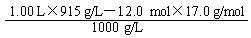 本题解析:(1)1.00 L该氨水中含氨的质量为12.0 mol×17.0 g/mol