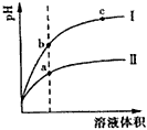 A.II为盐酸稀释时的pH值变化曲线