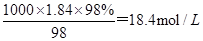 本题解析:(1)浓H2SO4的物质的量浓度c=。根据稀释定律,稀释前后溶质的物质的量不变,所以若设浓硫酸的体积为xmL,则xmL×18.4mol/L=500mL×0.5mol/L,解得x=13.6ml。
