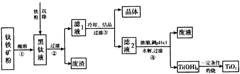 (1)黑钛液中生成的主要阳离子有TiO2-和Fe2+,写出反应①的化学方程式:_____________________