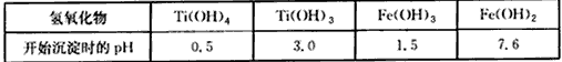 +3价钛极易被氧化;有关氢氧化物开始沉淀的pH 如下