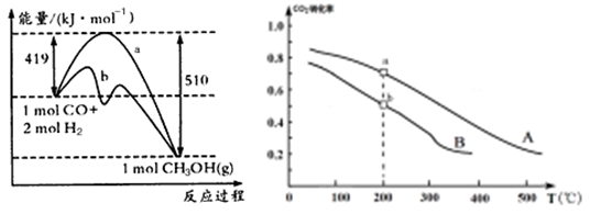O2(g) CO2(g)+2H2O(l) △H= -725.8kJ/mol;(2)①在方法一中由于消耗3mol的气体产生了1mol的气体,所以体系的混乱程度减小,因此该反应的△S<0;图中曲线a的活化能大,而曲线b的活化能小,所以曲线a到曲线b的措施是加入催化剂;A.因为反应前后气体的体积不等,若反应未达到平衡,则气体的物质的量就要发生变化,体系的平均摩尔质量也要改变,若体系的平均摩尔质量不变,则气体的物质的量不变,反应达到平衡。正确。B. 因为在方程式中CO与CH3OH的系数相同,所以任何时刻都存在V(CO)= V(CH3OH),因此该条件不能作为判断平衡的标志。错误。C. 若反应未达到平衡,则H2的转化率就没有达到了最大限度。现在H2的转化率达到了最大限度,说明反应达到了平衡状态。正确。D.对于一个确定的反应,其△H不会因为反应进行的程度的大小而发生改变。因此该条件不能作为判断化学反应平衡状态的标志。错误。故选项为AC。②反应CO2(g) +3H2(g)