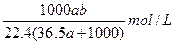 (3)将标准状况下a L HCl(g)溶于1000 g水中,得到盐酸的密度为bg/ cm3,则该盐酸的物质的量浓度是 。