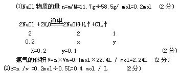 参考答案:(1) 0.5 , 2.5mol/L, 3.01×1023, 22.4L (2)0.3 mol/L(2分)。