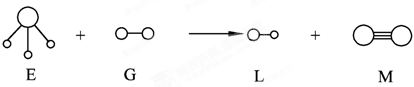 4、选择题 已知分子E和分子G反应,生成两种分子L和M(组成E、G、L、M分子的元素原子序数小于10 “○”代表原子“—”表示化学键),如下图,则下列判断错误的是(未配平)