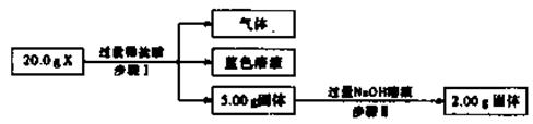 1、填空题 固体样品X由Cu、SiO2、KNO3、NH4Cl中的一种或几种混合而成。某同学取该样品进行如下操作(部分产物已略去)