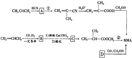(4)物质D的核磁共振氢谱有两个峰,它与CO、CH3OH以物质的量之比1:1:1反应恰好生成MMA,则D的结构简式为___________________,该方法的优点是________________。