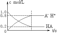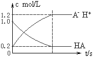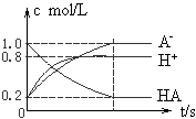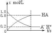 H++A-,如图将1.0mol HA分子加入1.0 L水中,溶液中HA、H+、A-的物质的量浓度随时间而变化的曲线正确的是