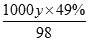 计算,设98%的浓H2SO4的密度为x,49%的H2SO4溶液的密度为y,物质的量浓度为c,则: