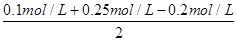 溶液的总体积为:20ml+20ml=40ml,即0.04L,